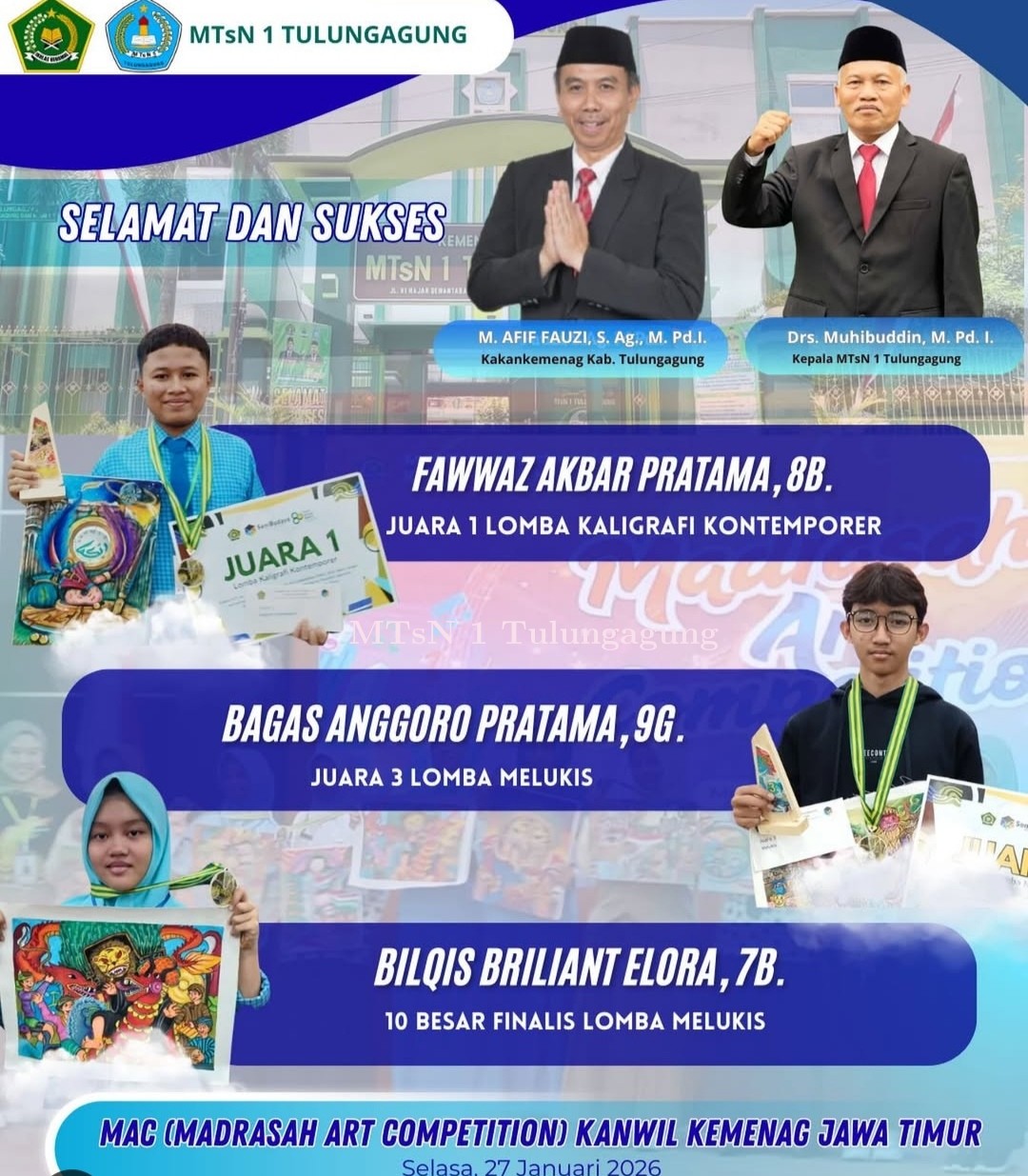 MTsN SATU - Tsania Marwah Diva Yudiansya siswa kelas 7.K berhasil menorehkan prestasi Medali Perunggu OMNAS 15 pada Ajang Kompetiai Nasional Matematika Sains Bahasa Inggis ke-15 yang dilaksanakan di Gedung Fakultas . . . 0