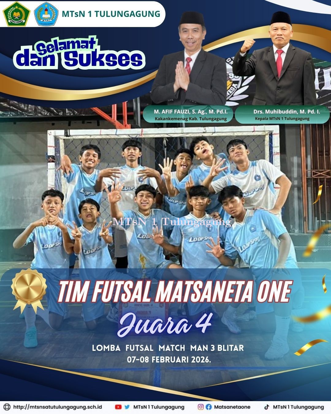 MTsN SATU - Tim Futsal MTsN 1 Tulungagung, Ahad (08/02/2026) meraih Juara 4 dalam laga Futsal yang digelar MAN 3 Blitar. Ini . . . 0